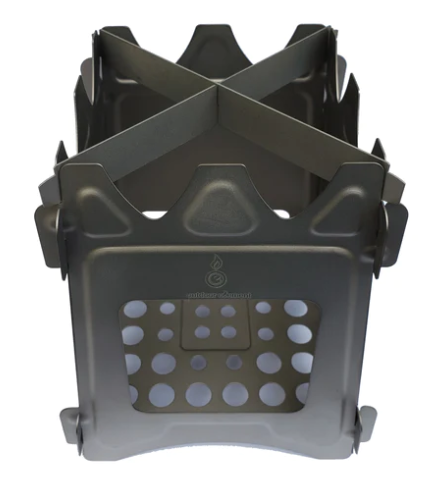 Easily pack this lightweight, titanium, windproof stove by Outdoor Element. It is great for the casual camper as well as the through hiker. It weighs in at just 10.8 oz packed flat for easy carry. It assembles quickly and includes a convenient and durable coated canvas storage sleeve. Quickly assemble and add some wood, leaves, sticks or other organic material to provide the fire. It is very versatile, a great trail camp kitchen bio stove.